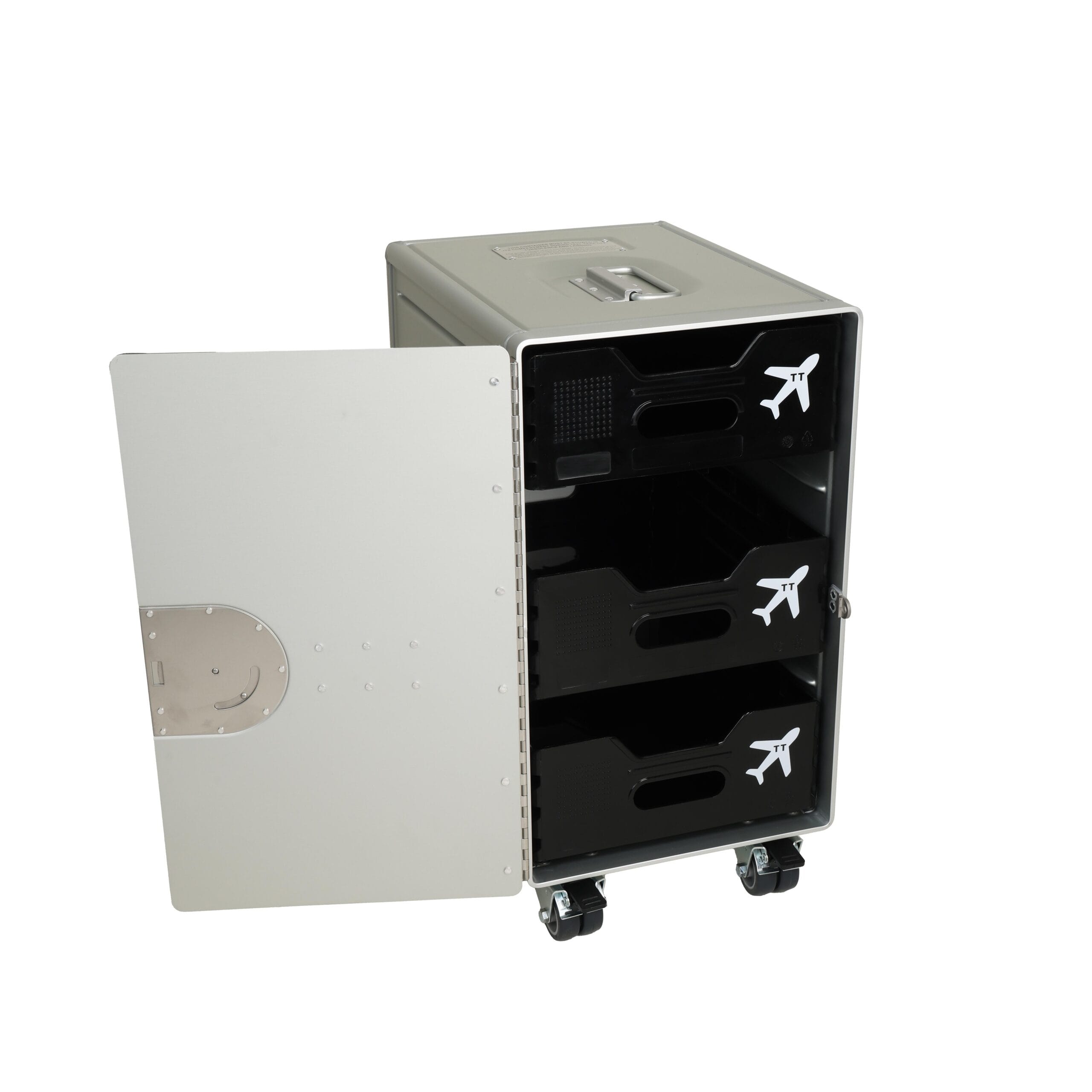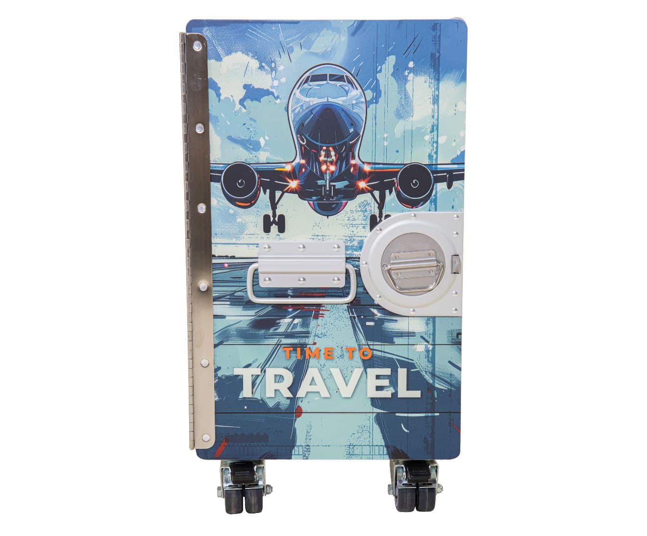 This XL galley container is transformed in to a very cool Aviation art stroller and fits each interior.